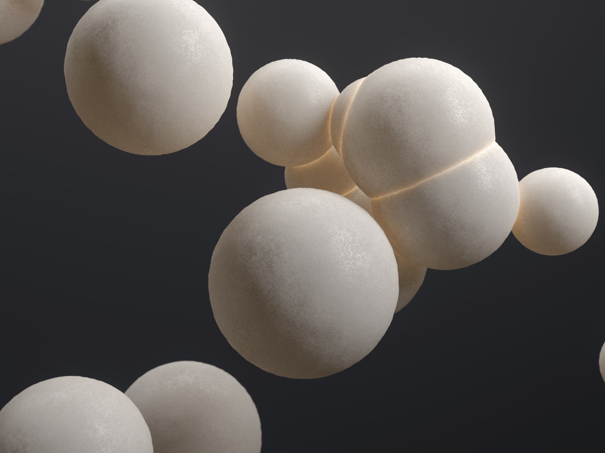 A frame from a look into a simple X-particles movement based in Cinema4d. I was adjusting settings to get the correct Subsurface scattering which would have the inverse effect than expected on connection. These remind me of popcorn for some reason. Rendered using Redshift.