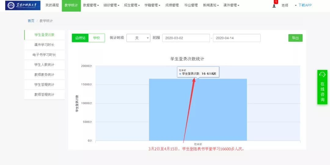 一个月内共有16600多人次登陆“青书学堂”在线学习数据
