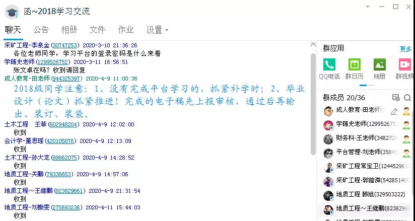 2018级函授学习交流QQ布置毕业实践环节相关工作