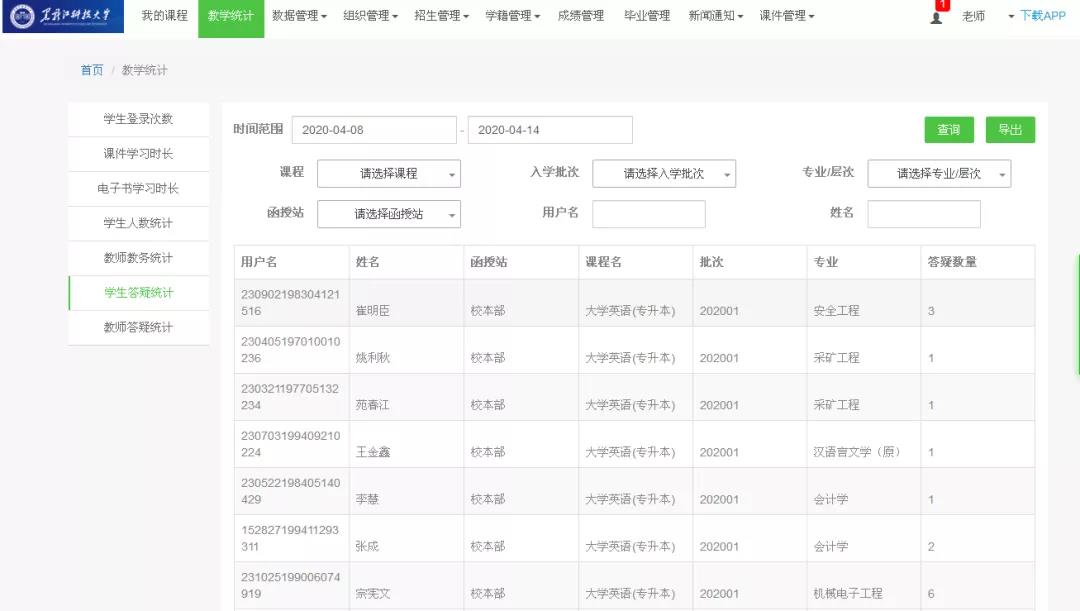 青书学堂答疑情况统计