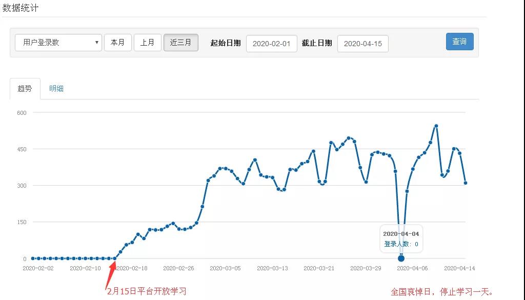 两月近96900多人次在自建平台在线学习数据