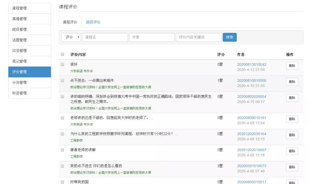 近期员工对课程的评价信息