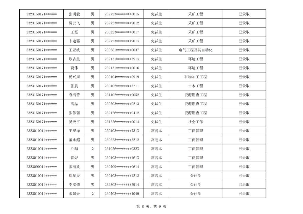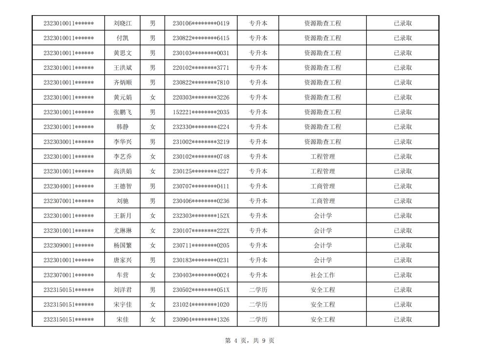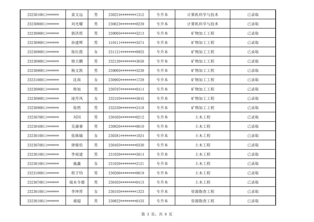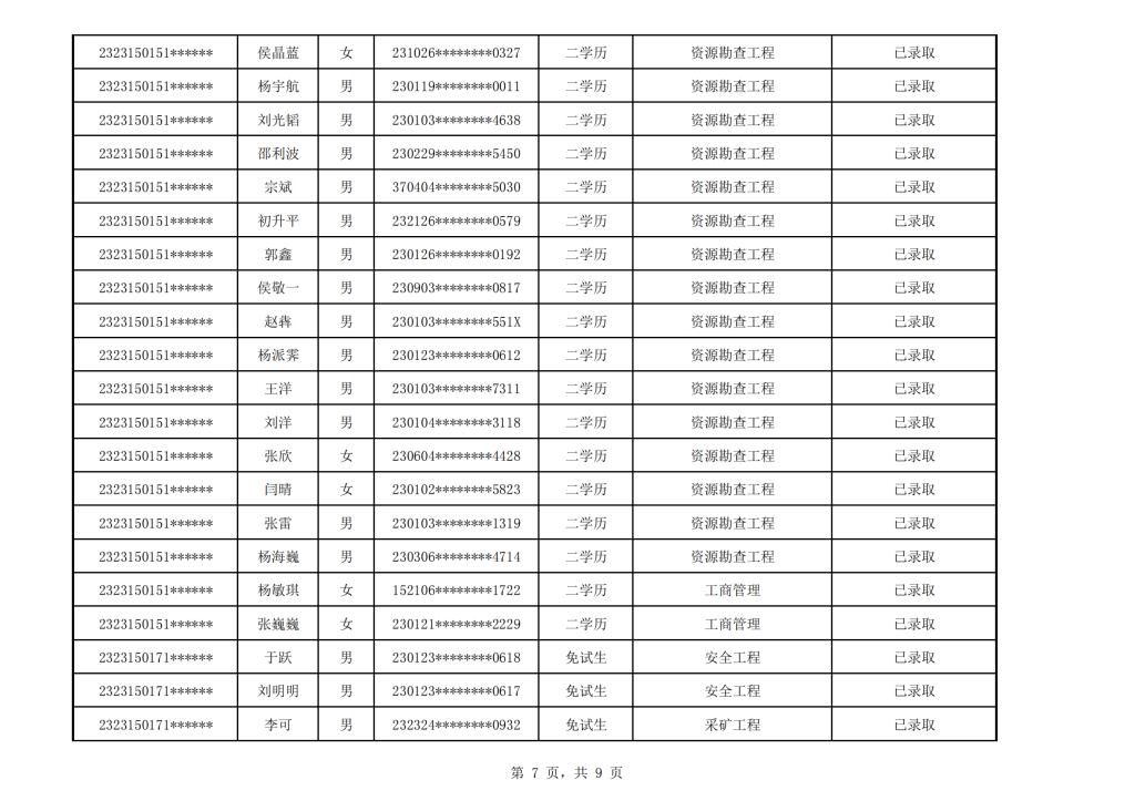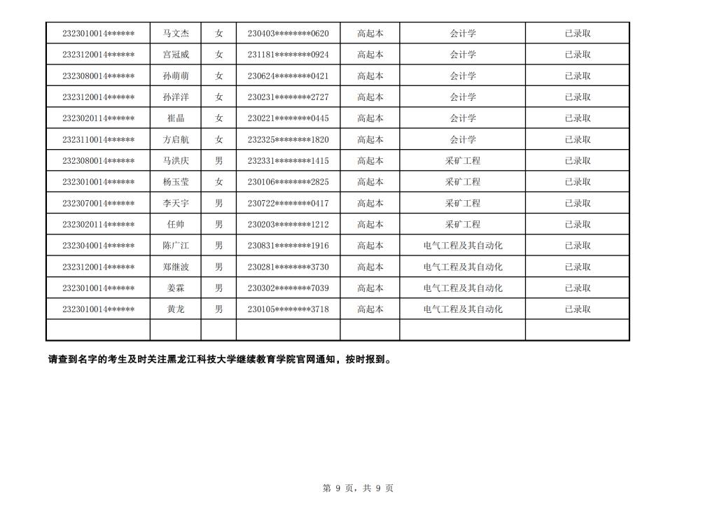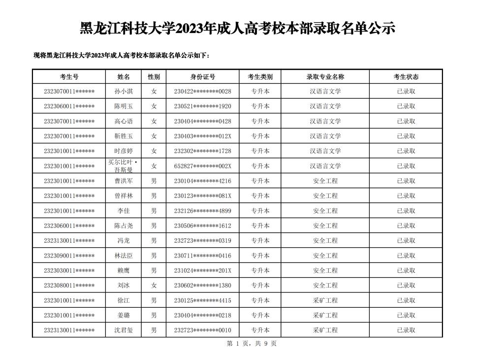 太阳成集团tyc151cc2023年成人高考校本部录取名单公示