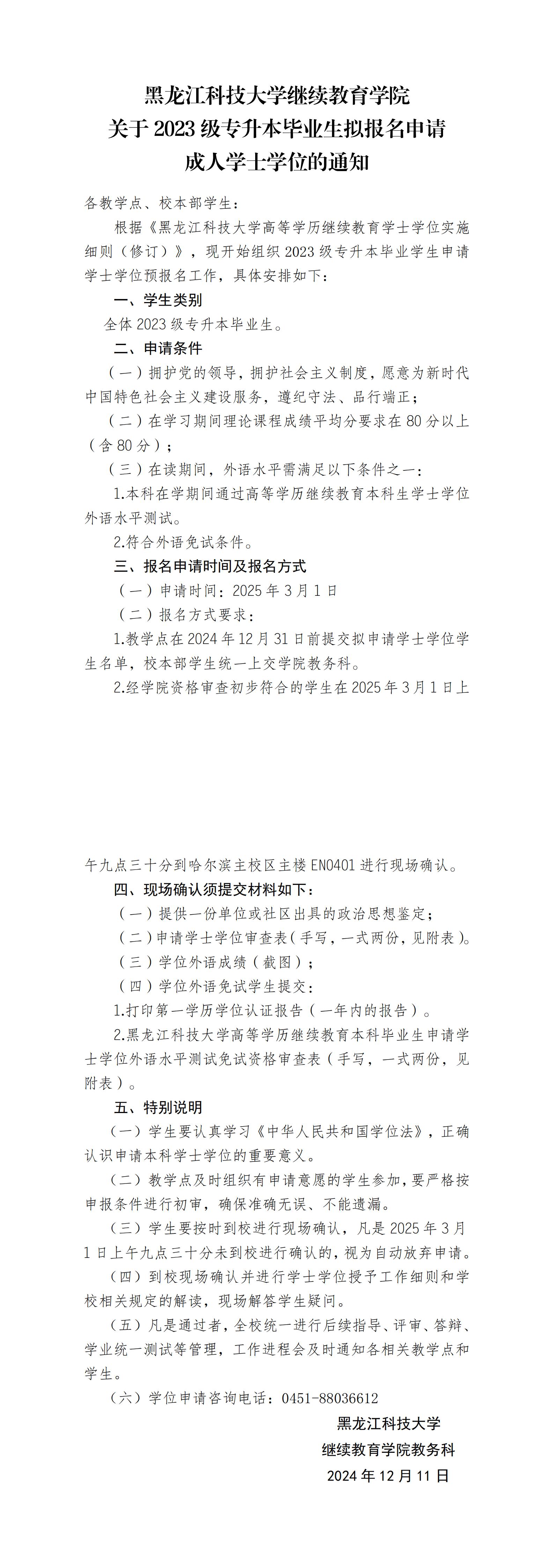 太阳成集团tyc151cc关于2023级专升本毕业生拟报名申请成人学士学位的通知