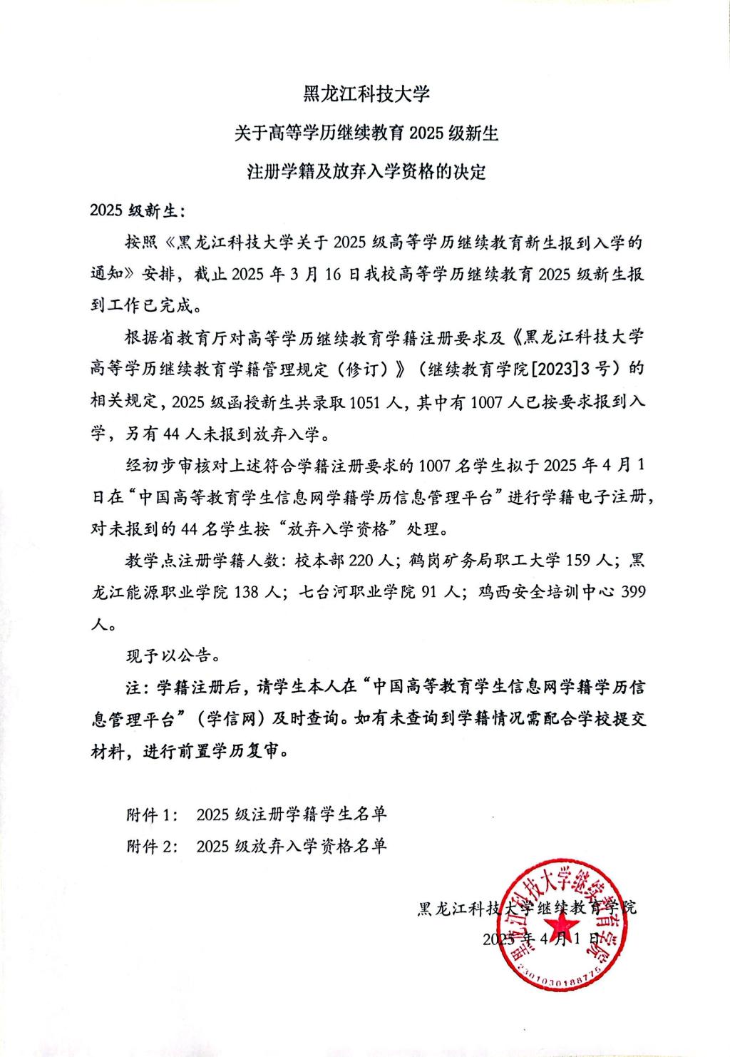 太阳成集团tyc151cc关于高等学历继续教育2025级新生注册学籍及放弃入学资格的决定