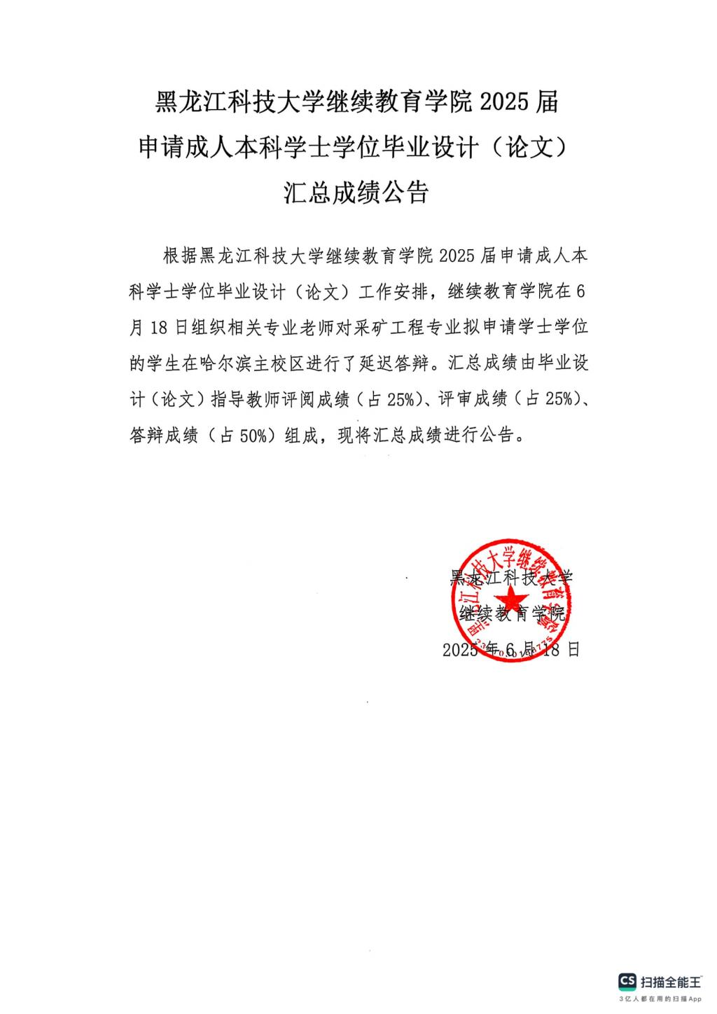 太阳成集团tyc151cc2025届申请成人本科学士学位毕业设计(论文)汇总成绩公告