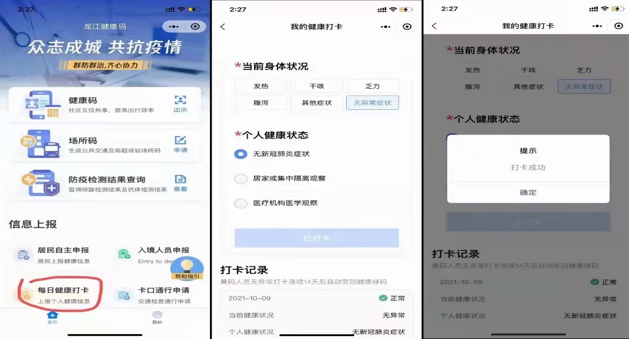 2.考生须主动出示“龙江健康码”及“通讯大数据行程卡”绿码,并按要求接受体温测量。体温测量若高于37.3℃者,应至临时等候区复测体温。仍不合格的,须经考点现场医疗卫生专业人员综合研判是否具备正常参加考试的条件。