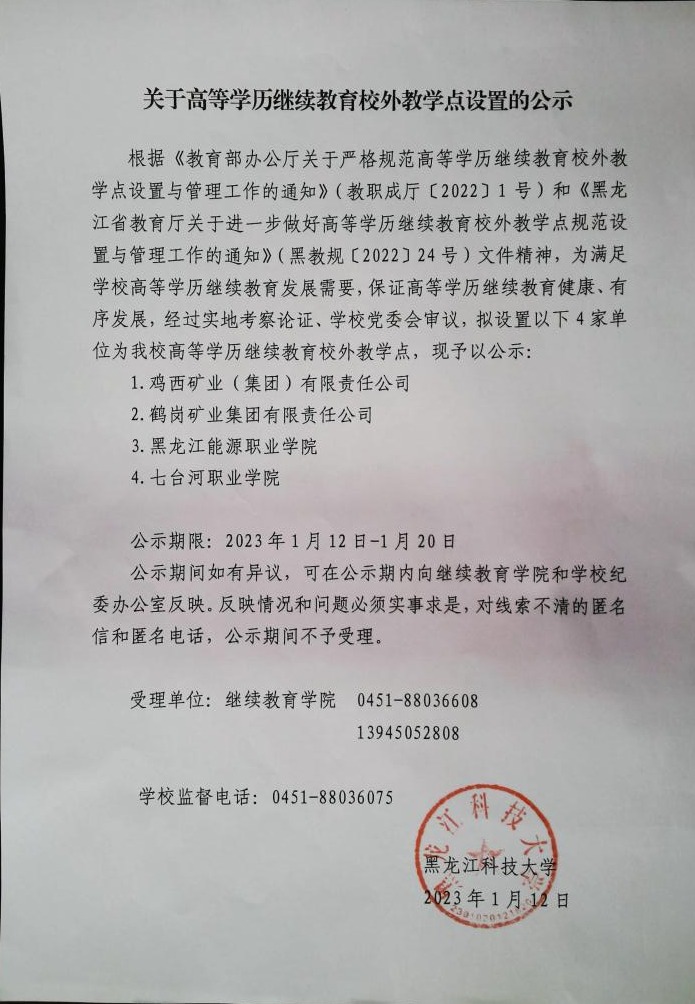太阳成集团tyc151cc关于高等学历继续教育校外教学点设置的公示