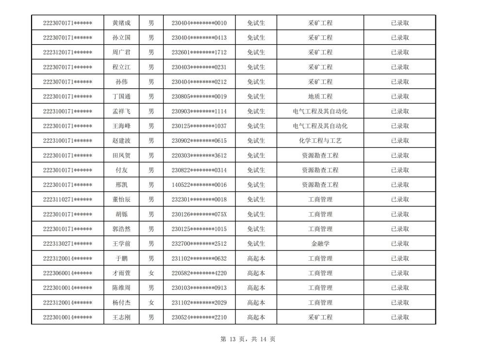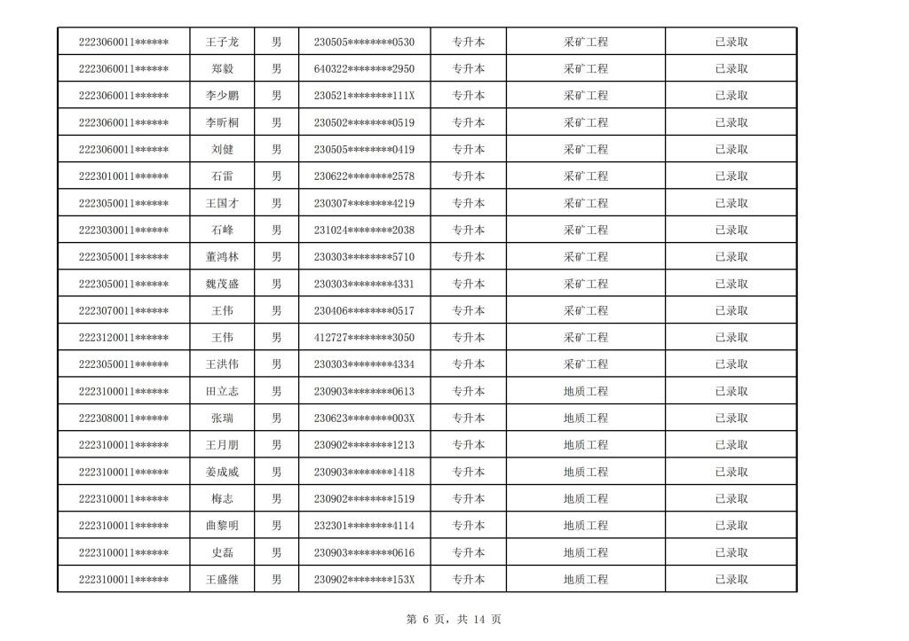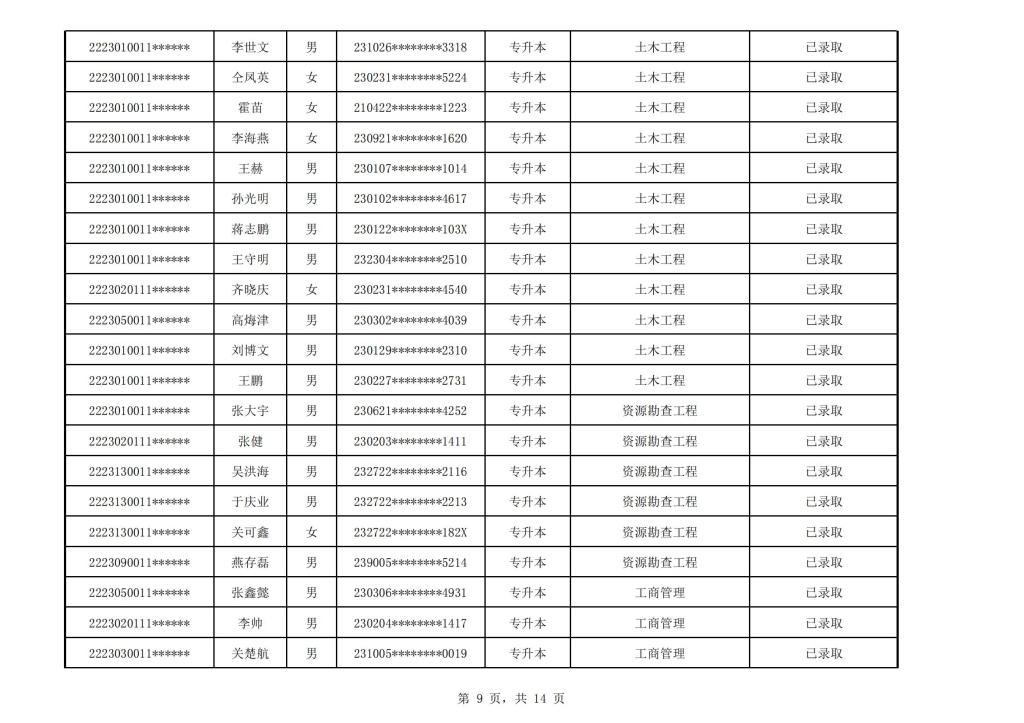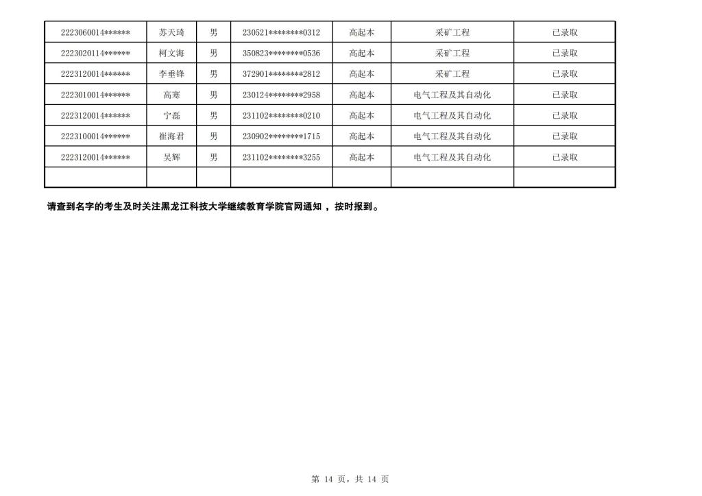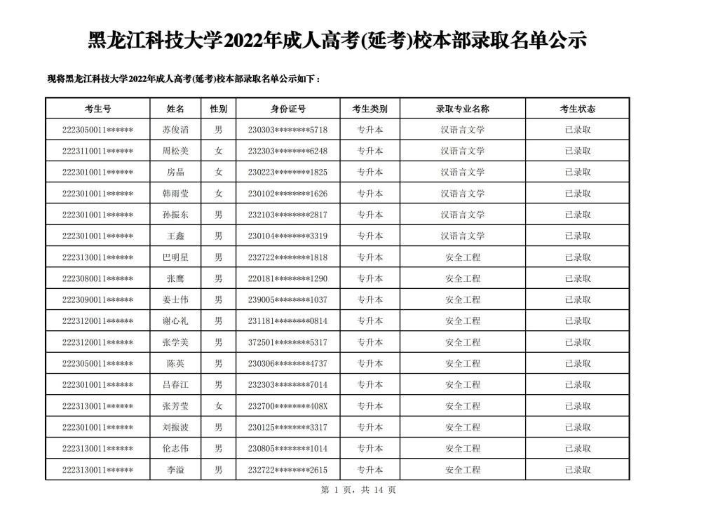 太阳成集团tyc151cc2022年成人高考(延考)校本部录取名单公示