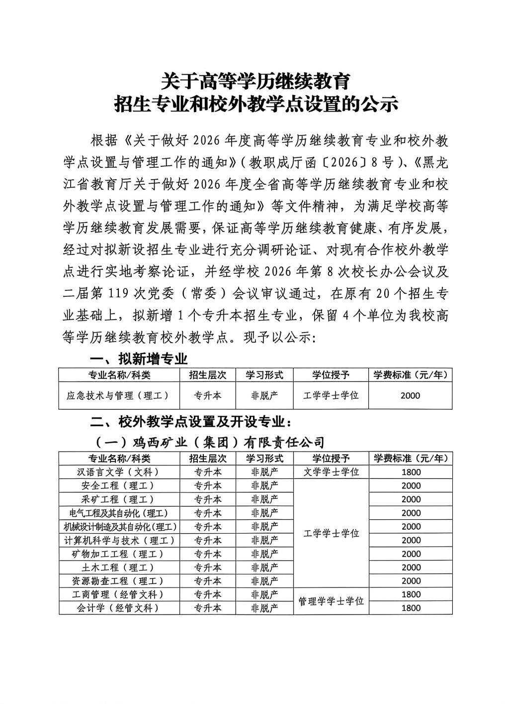 关于高等学历继续教育招生专业和校外教学点设置的公示